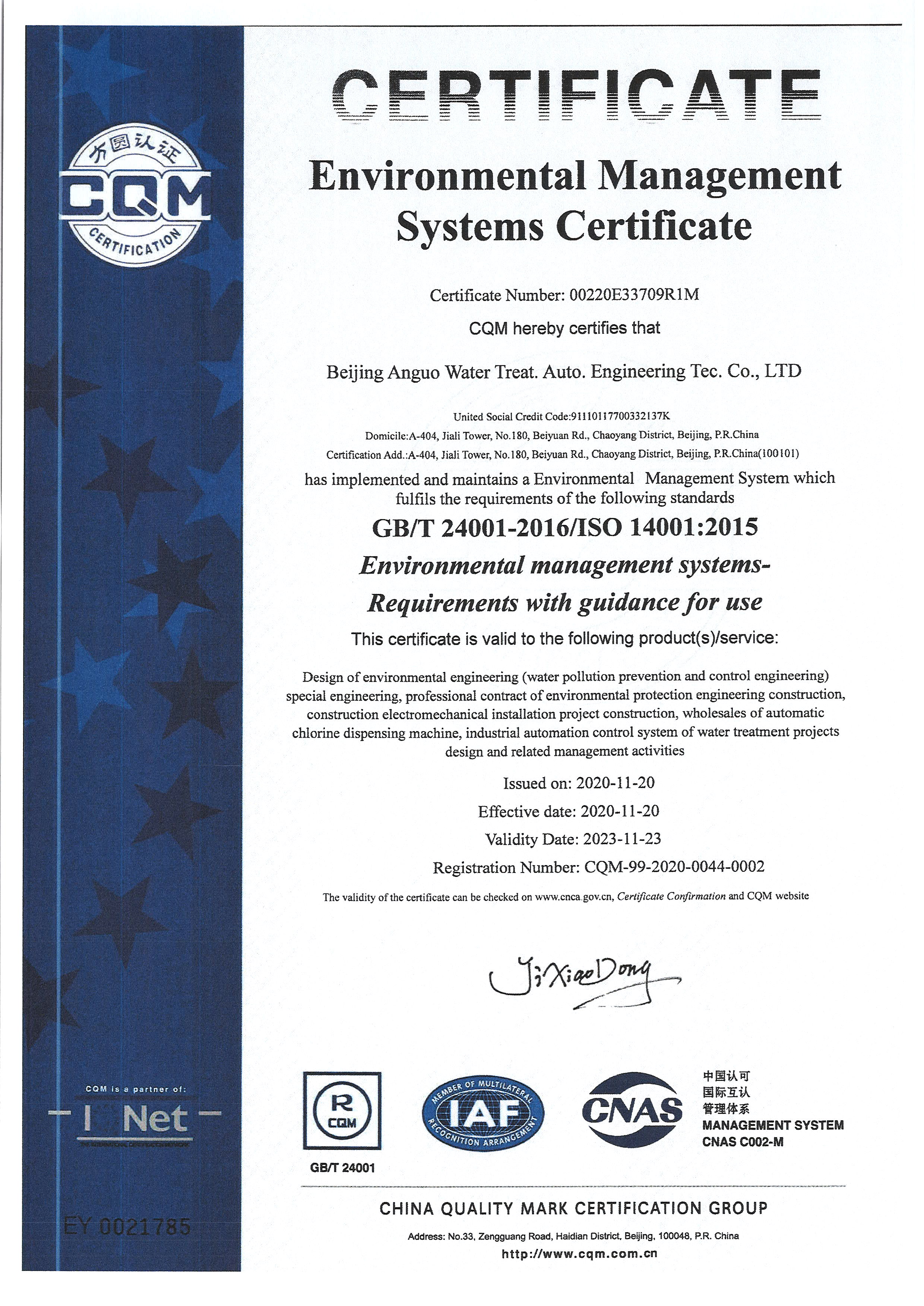 北京安國水道自控工程技術有限公司2015年入駐中國給水排水品牌委員會